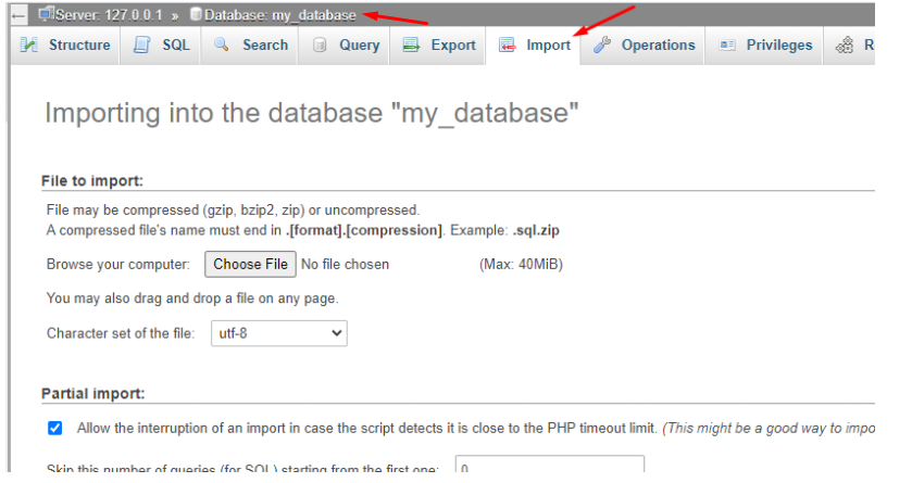 In your database go to Import tab for importing install.sql file from SQL Folder.